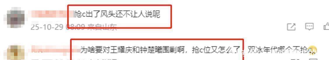 评论区的网友们也是看热闹不嫌事大:圈里这活人,抢了C的机会还不让人说上一句!为什么要盯着王耀庆和钟楚曦打压呢?抢C位又怎么了?