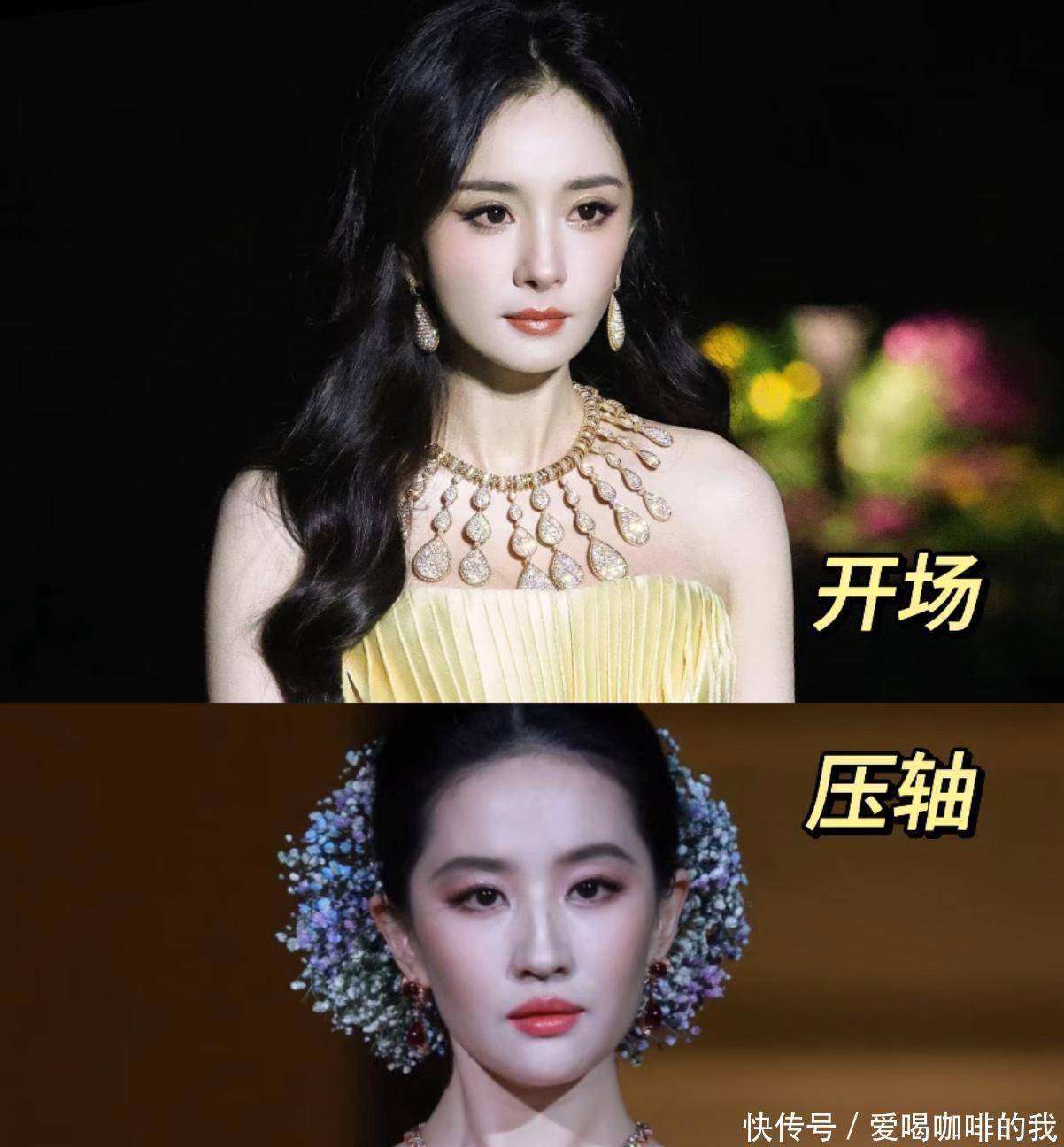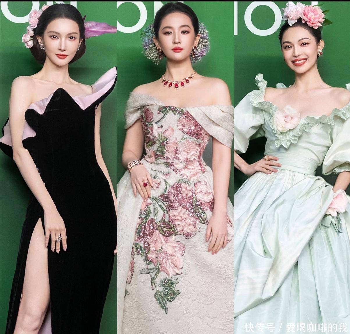 “话题女王”杨幂身穿一件金色鱼尾礼服,亮闪闪地登场,真是光彩夺目!“国际巨星”刘亦菲穿上了那件重工花瓣裙摆的礼服,压轴出场,真是令人眼前一亮。还搭配了其他小生和众多女星的助阵,整个场面更加精彩纷呈。上海的这个晚上,场面豪华得让网友们都惊叹:“比过年还热闹呢!”